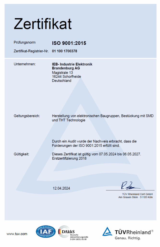 Laden Sie hier das ISO 9001:2015 Zertifikat vom TÜV Rheinland herunter
